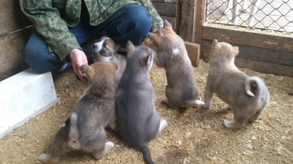 Щенки западносибирской лайки с документами Родились 07.05. 2014. 2. Регион- Красноярск 3. Цена щенка. -10000 4. Телефон продавца- 89504325413 5. В помете 5 сучек 2 кобеля,в продаже кобели. 6.Родители щенков работают на промысле