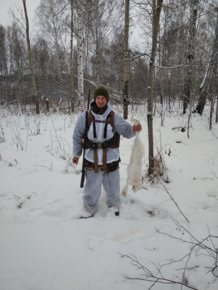 Сегодня с другом вытропили русака. Второй русак в жизни, которого пришлось в руках держать - предыдущий был лет 25 назад. Показалось, что беляк похитрее будет, но русачина заметно больше и тяжелее любого беляка.