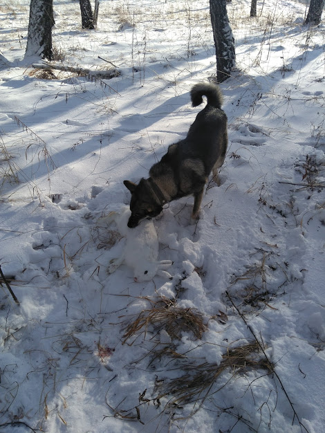 Сегодня погоняли зайчишку,но добыть не получилось следы быстро заметает,а прогулка в радость. Кстати канонада сегодня стояла хорошая)