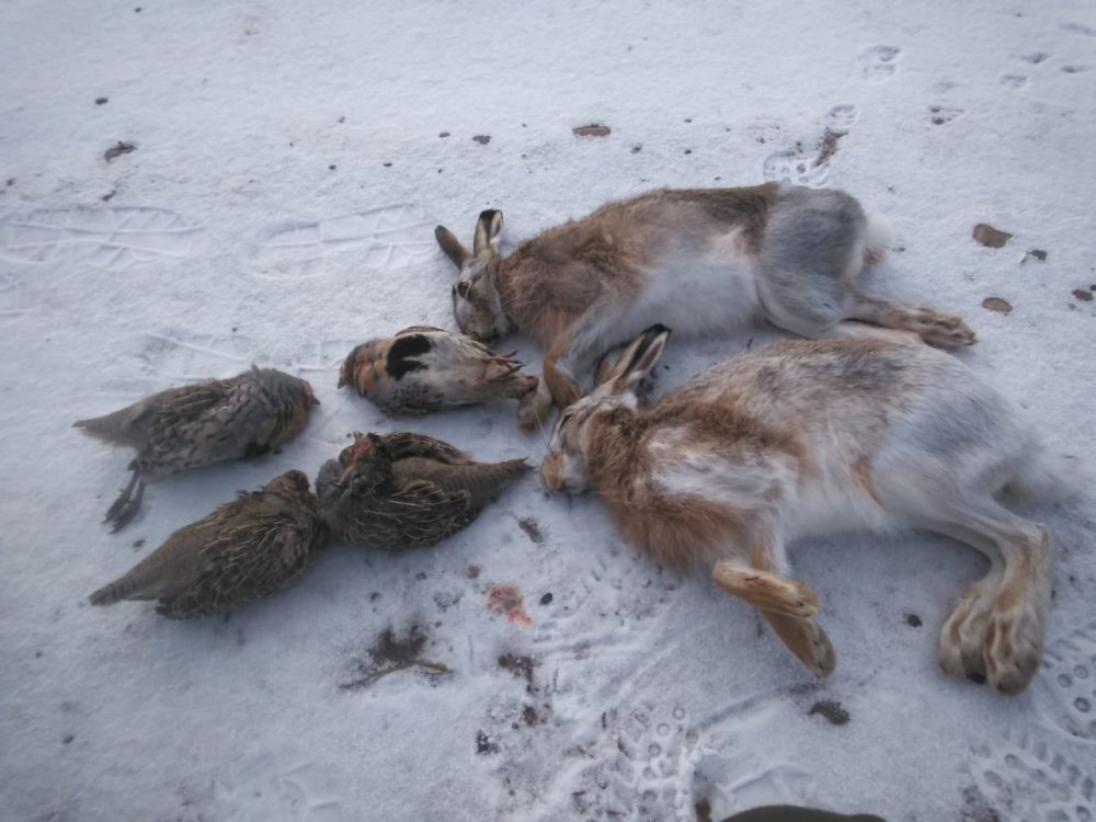Добрый вечер.Сегодня тоже вырвались. Вчера и ночью снег ещё поднавалил где то поколено. Нашли ночные быстро и выставили цепь из двух напарников и я пошёл поднимать. Метров сто не прошёл и поднял. Заяц сделал небольшой круг и вышел на дорогу. Там один стоял и почему то задом к дороге а не профиль. Ну заяц его спалил с тридцати метров, шёл в спину. Первого взяли на втором круге а вот со вторым помудохались. нашли с дороги след и также выставились, я по кругу в обход пошёл , не успел дойти до следа и вижу краем глаза летит между нами. Три раза через чаплыжник стрельнул но не зацепил. Часа три его гонял по непролазному мелколесью и ни как выгнать не смог. Один раз его ещё увидел и стрельнув перебил заднюю ногу. После этого часа два его прогнав бросил. Кровь постоянно капельками идёт а заяц ни в какую не ложиться и в круг не идёт. После завтра поеду проверю , не окачурился ли. Не люблю подранков оставлять.