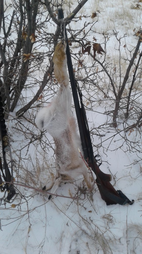 Погода у нас отличная.Морозец.Вечером подсыпало снежка.Утром пошел потропить зайцев.След нашел сразу.Сдвойка и заяц прыгнул в сторону посадочки.Поднялся быстро,но я его проглядел.Заяц мелькал в кустах.Выскочил на дорогу и побежал вверх по склону.Азарт взял вверх,думаю попробую взять.Покурил ,подождал немного и двинулся по следу.Мысли были ,что сделает сдвойку и прыгнет в посадку или пашню с дороги.Прошел с километр.Впереди участок дороги метров 100 ,без снега,сдуло.След зайца пропал,но думаю он все равно пробежал по дороге.Я остановился.Ветер дул навстречу.Вдруг вижу этот заяц возвращается ко мне....Я стою не шевелюсь.Заяц прыгает в мою сторону.Периодически останавливаясь и прислушиваясь.В общем подпустил я его метров на сорок и добыл....Как я думаю заяц по земле добежал до снега...потом подумал что лучше прыгнуть с земля чем со снега и вернулся)
