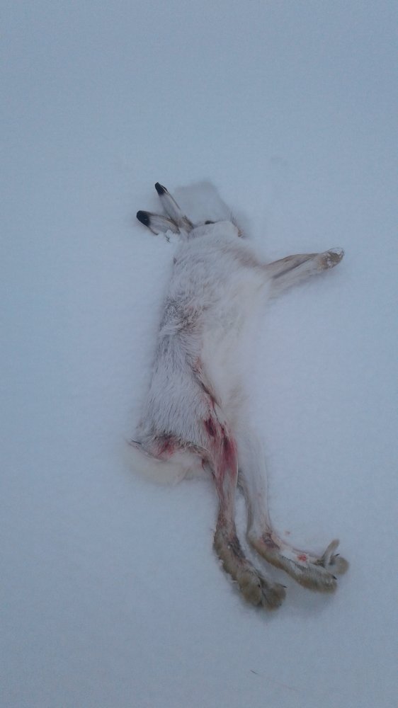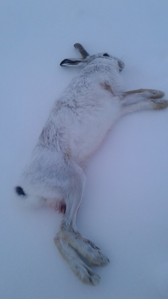 @Leon198754, это был гонный заяц на отлёжке. Я думал он в середине в мелочах улёгся- там несколко двоек и троек было со скидками. А он прошёл весь ложок и улёгся на краю острова- это запечатлён момент ранения зайца. Потом погоня продолжилась- я обрезал его в шестистах метрах правее и развернул по другой балке. Там сын его и перехватил.