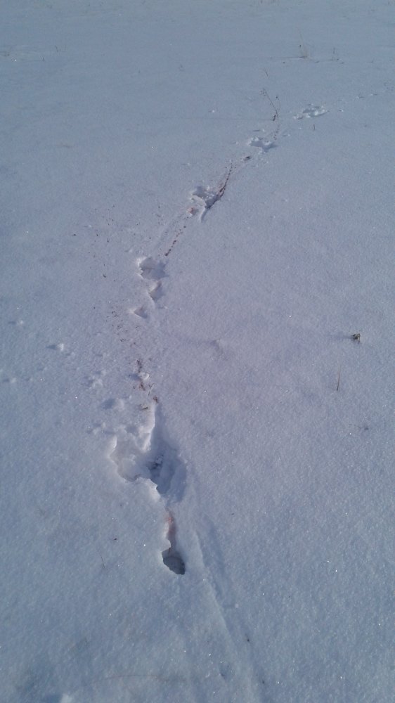 Буран шел сутки. Сегодня под утро снег успокоился. Выехал на охоту. Мало надеясь на успех. В такую погоду зайцы не будут бегать. Почти плюсовая. Небольшой южный ветерок. Проехал километров пять периодически заходя в зайчьи места. Но следов не было. Только лисьи и козьи переходы. Решил проверить ещё один участок. И все таки я нашёл слабо видимый след русака. Он вышел на дорогу. Потом спрыгнул на ковыл. Но не как обычно на лежку а просто сделал не большой прыжок. След уходил в овраг. Прошёл метров 700 .Заяц сделал сдвойку на дне оврага. По верху шел след зайца. Я был уверен что это он. Заяц снова вышел на дорогу. След стало видно лучше. Впереди был затяжной холм с ковылем. Куда русак и спрыгнул с дороги. Я прошёл уже больше километра. Но уже у зайца не было шансов. След пошёл прыжками в заросли челиги. Потом на небольшой холм. Я был уверен что он ляжет на склоне этого холма. Как раз там были густые пучки ковыля. Прошёл метров 100 . И тут я увидел чёрные кончики ушей в ямке около пучка ковыля. До зайца было метров 10. Заяц сидел плотно. Но меня видел однозначно. Я решил проверить это. .начал поворачиваться к зайцу спиной. Только отвернулся в пол оборота, как русак красиво выскочил на снег. Убегал прямо от меня. Выдержал немного надеясь что заяц повернет немного в сторону. Что бы не стрелять в зад. Но пришлось. Отпустил метров на 30 и выстрелил единичкой. Русак после выстрела закрылся в снег по инерции. На этом охота закончилась. .