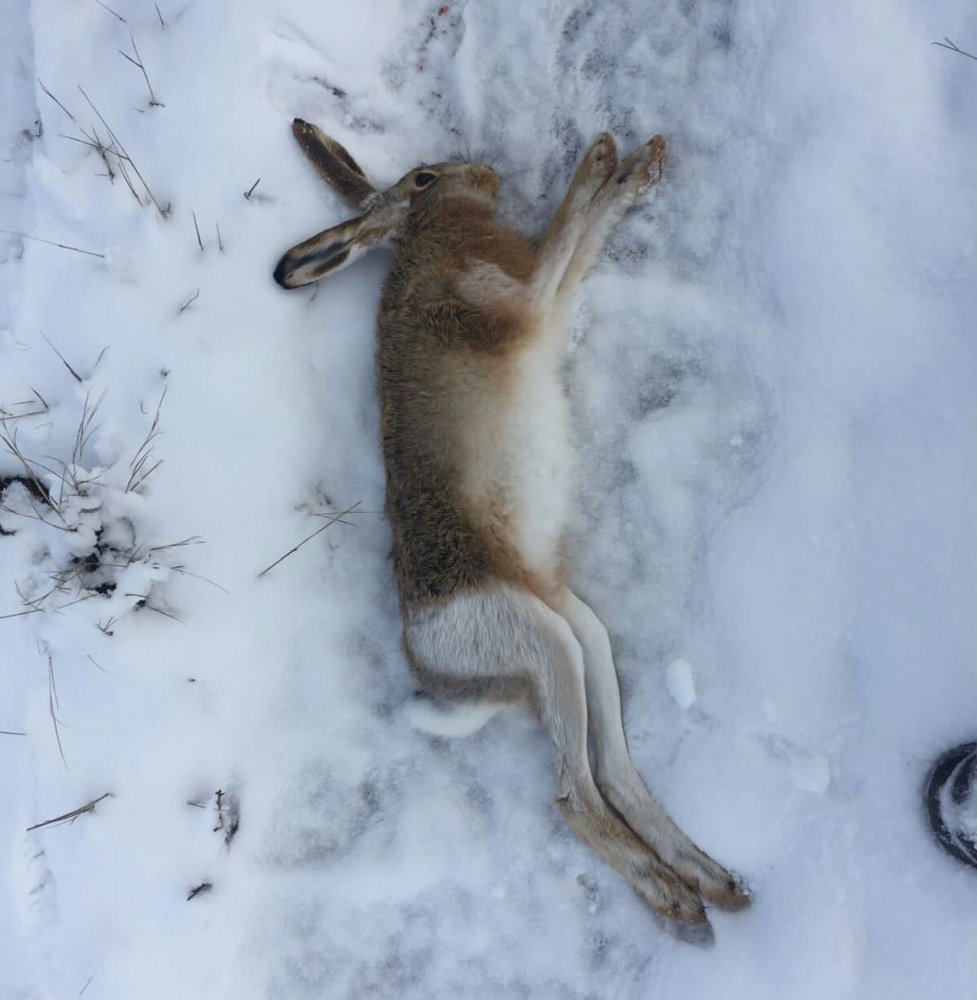 Вчера выехал на охоту. Снежок тает. По дорогам уже земля. Но следы были. Нашёл скидка. Начал подходить. След уходил в островок с челигой. Заяц подпустил довольно близко. Выскочил метров за десять. Стреляю двойкой у угон. Метров 30 . Вижу что попал но русак уходил. Добавляю единичкой. ..но скорее всего смазал. ...Заяц ушел на скошеное поле подсолнуха со стерней. По следу кровь. В общем проходил я за ним километров пять по полю. .Пока он не вышел на дорогу. Потом с трудом я отыскал скидку с дороги на ковыле. Добрал.