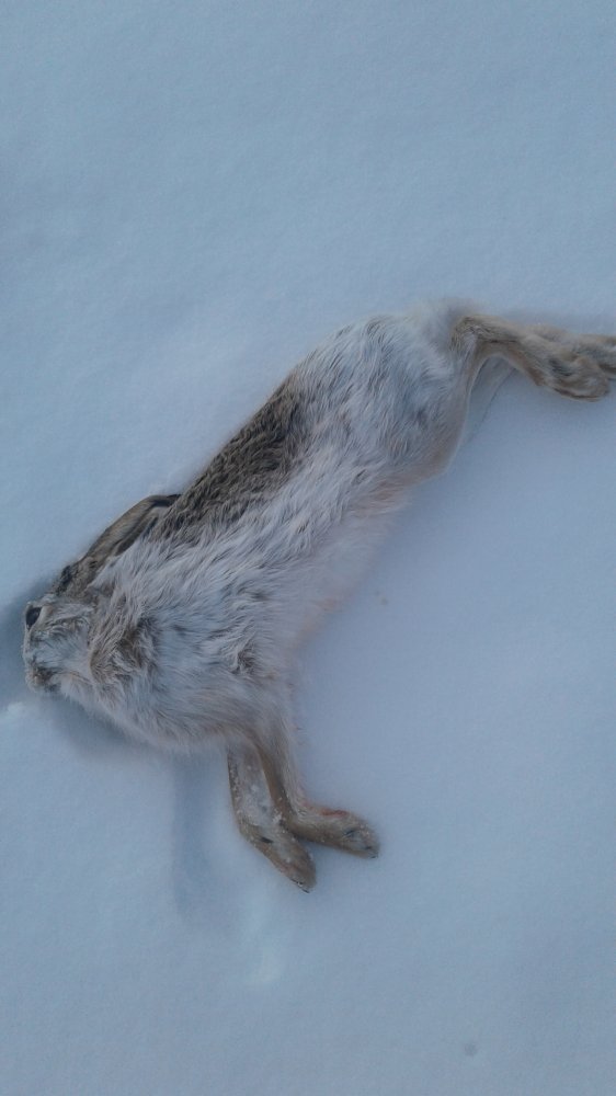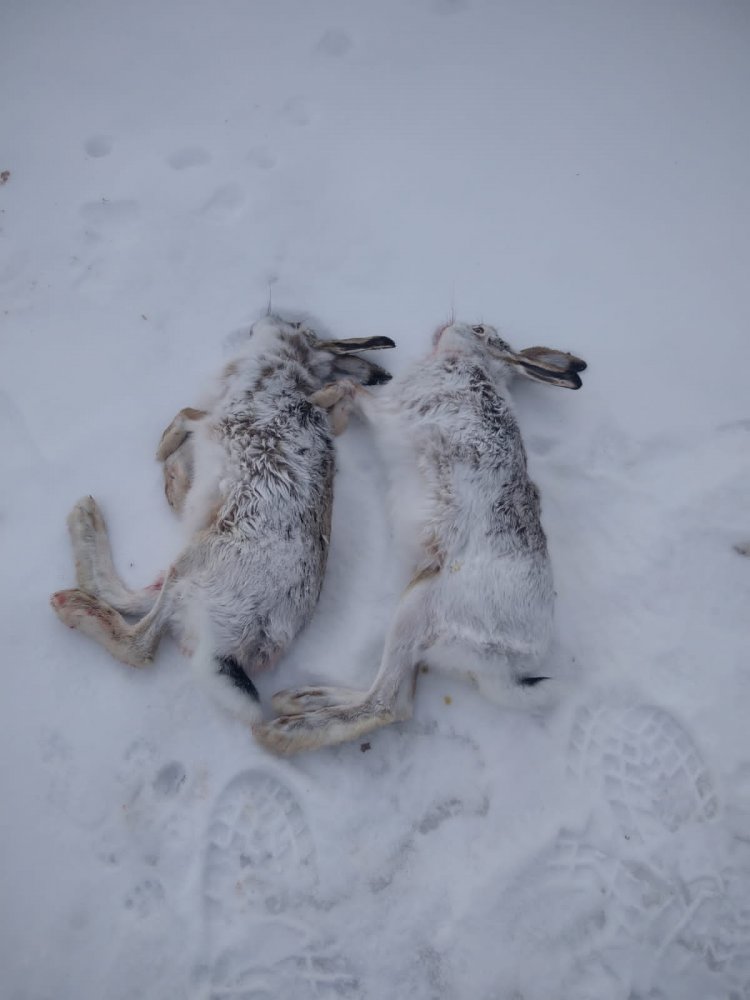 С утра ветер северный. Прохладно. Но выехал на охоту. Следов много. Все утоптано. Но двух русаков нашёл.