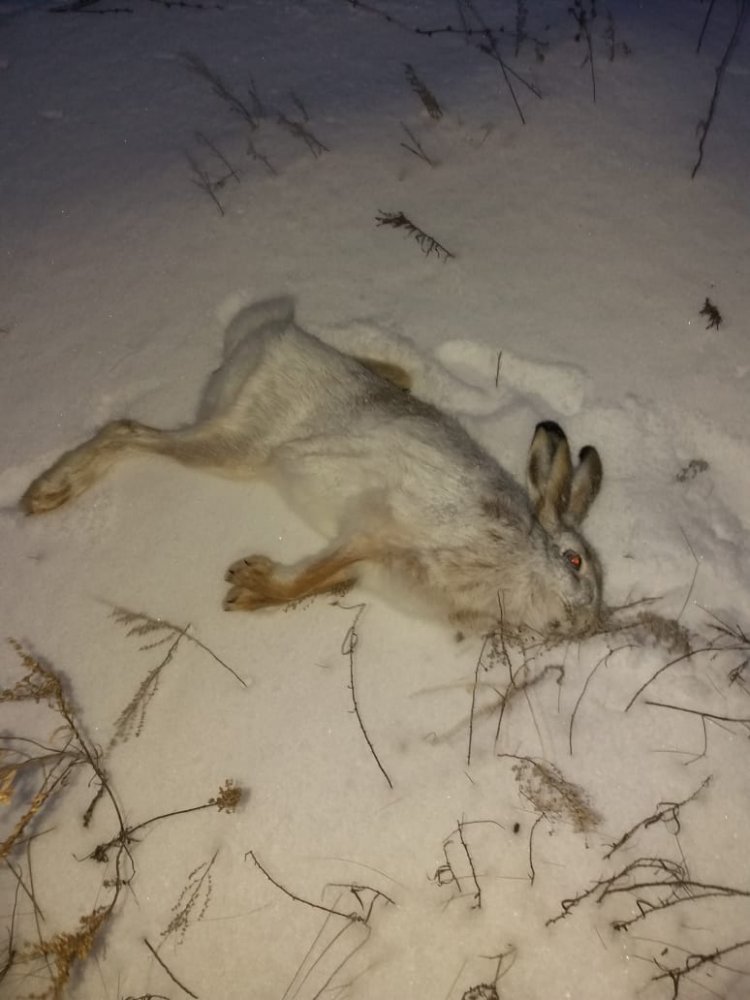 Мороз упал до минус 25. Вышел после обеда на охоту. Следов много. Зайцы натоптали тропы. Ложаться в основном в лесу. Без собаки трудно в таких местах. ..Одного поднял под вечер. Удалось добыть.