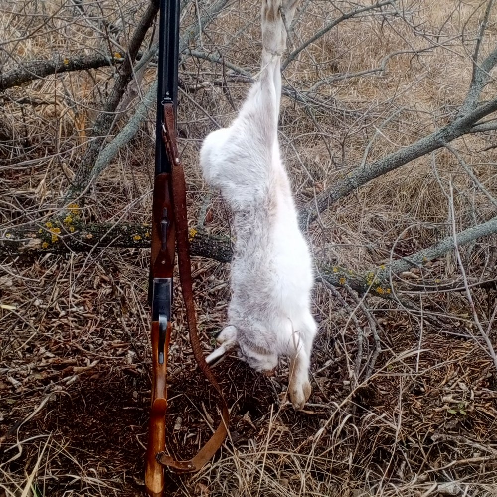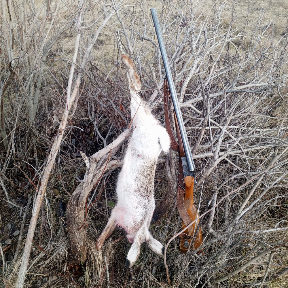 Погода отличная,тепло до плюс 7 днем.В полях сыро.Выехал поохотиться на куропаток и зайцев.Решил поискать куропаток вдоль поля с семечками.По пути зашел в лесной остров.Прошел метров 100,с правой стороны от дерева метров 10 поднялся русак,белый уже.Охоту только начал,не стал стрелять.Через 30 метров смотрю еще один русак сидит под березой метрах в 20. Прижимается к земле.Тоже решил не стрелять.В общем в этом месте еще двух русаков нашел,сидят около деревьев,хорошо видно белые.От птиц думаю они сейчас прячутся около деревьев.После решил пройтись вдоль озимки.Через час примерно поднял стайку куропаток,две выбил на ковыле.Походил прилично,хорошо ходить пока снега нет.Нашел русака на ковыле,метров 50 от поля с озимыми.Как обычно добыл двойкой,стрелял около 30 метров.Что то мне все больше нравится с 16 калибром охотится.