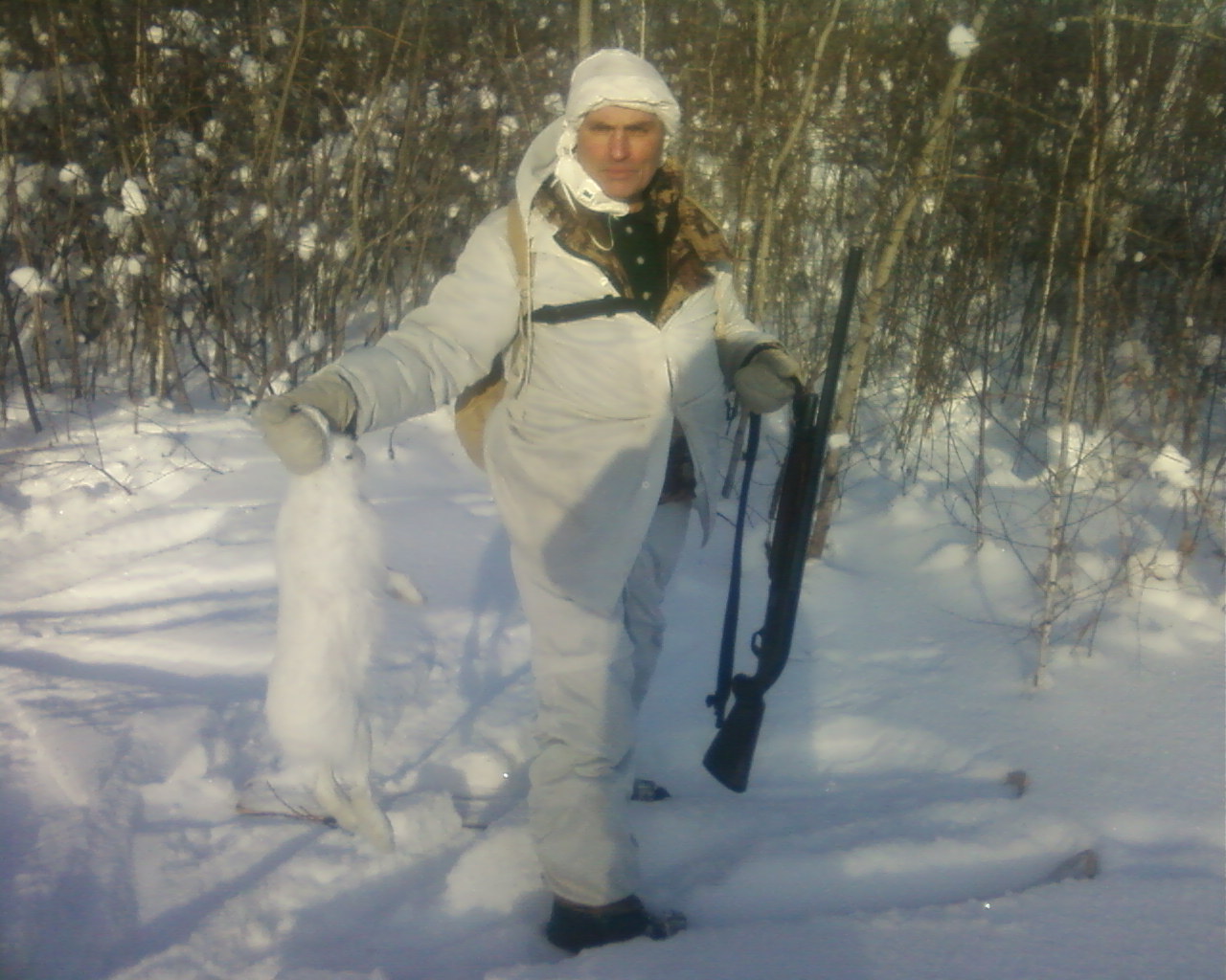 Русак легко тропится в одиночку,а вот беляка лучше нагонои вдвоем,если без собак охотиться).
