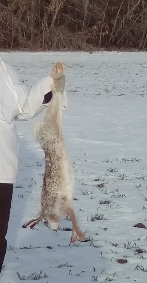 В прошлом году убивали русака.Подняли в околке-бросили .Через час сын пошел по следу,а я на лежке.А русак никуда и не думал убегать-через сотку метров по открытой местности пробежал и завалился под лэп.Там его сын и прибрал.На вид русак страшной какой-то был.И не серый и не белый.Какой-то коричневый и клочками белизна.