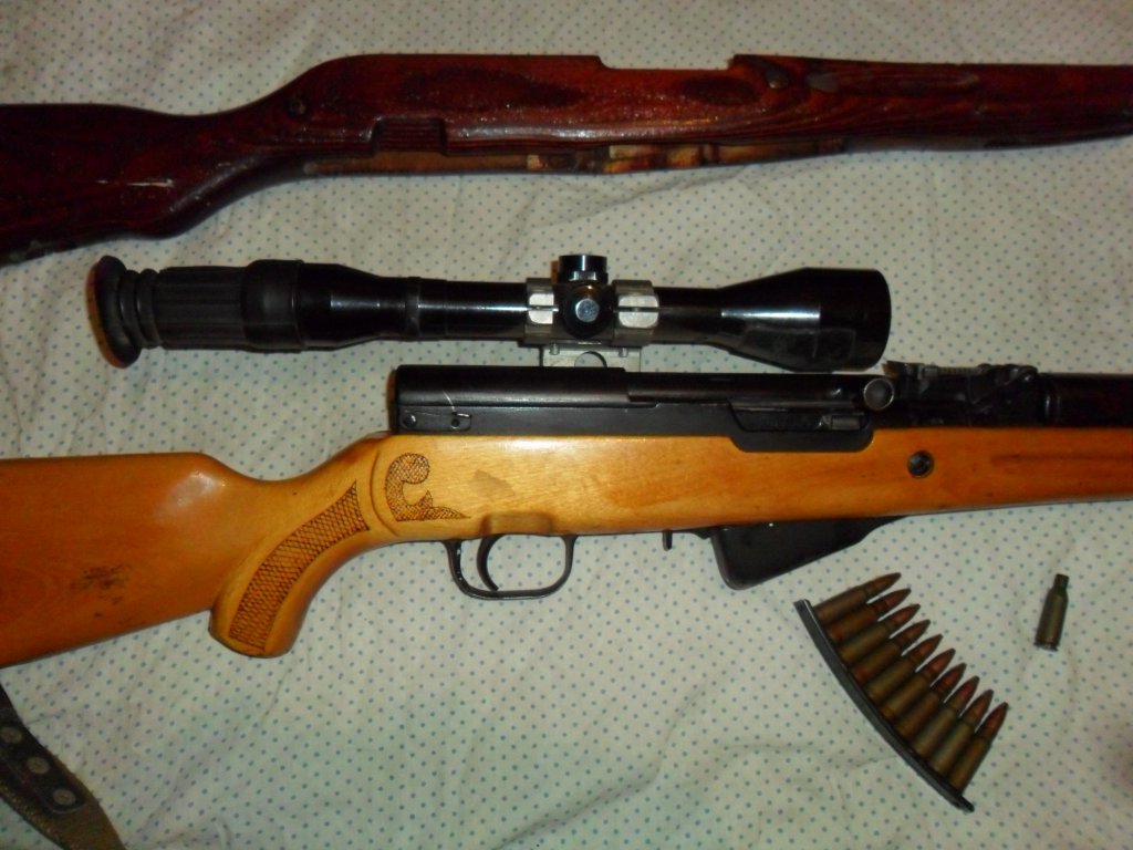 Продам ОП СКС 1953 г.в с 6-ти кратной оптикой. Оружие в отличном состоянии. Ложа изготавливалась под стрелка по индивидуальному заказу. Родная ложа прилагается. Оружие находится в Красноярском крае. Цена 25 т.р. т.8-908-014-восемьдесят восемь-83