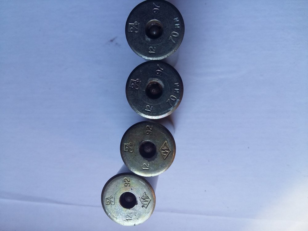 1. Латунь 12к, ЦБ, ..Сокол.. (СССР :D) хранение в хороших условиях, проверен горением-НОРМА, 2,15 гр., прокладка из переплетного картона 3мм (в натяг со скрипом), войлочный неосаленный 10го калибра, прокладка 1мм, ДВП 10го калибра, ещё 1мм прокладка, дроби N6 32гр., бумажка с номером дроби и дробовая заглушка с рёбрами (скв шах).
