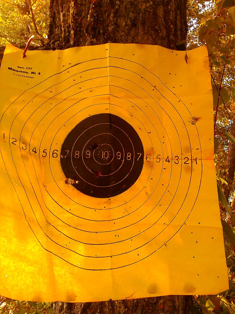 2го числа отстрелял снаряженные патроны.Латунная гильза под ЦБ, 25 грамм 6ки на ДВП пыжах и 1,5 сокола отработали хорошо. На 30 метров попало 8 дробин в дно ведерка из под майонеза. Тот же патрон но только дробь с крахмалом, попало 11 дробин в такое же ведерко. Выстрел резкий, отдача комфортная для легкой одностволки.