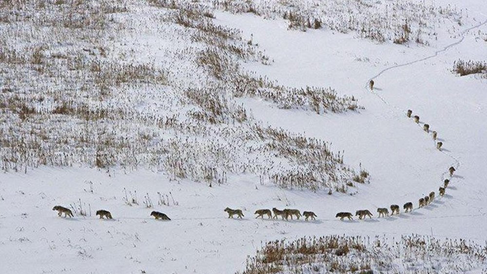 Не получится, еще чуть-чуть и на них нанесет запах с засидки, и после первого выстрела остальные разбегутся. Чтобы перещелкать стаю надо садить отделение снайперов на противоположном бугре. А банда серьезная, много дел натворят.