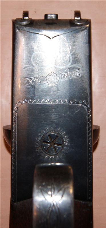 Насколько я знаю, на штучных ружьях времен СССР гравировка (всечка) серебром присутствовала в обязательном порядке. Вот колодка штучного иж-58.