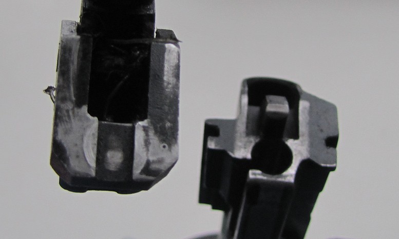 А на приблуде возвратной пружины хорошая выработка по краям, причем один край намного сильнее и бьётся эта приблуда в тыльную часть корпуса карабина. Не сказать, что винт сильнее закручен или положение иное - все так же как на твоём снимке, но видимо , та часть корпуса в которую и бьет приблуда имеет выступающее положение или в приблуде края выступают сильнее, хотя там ровно.