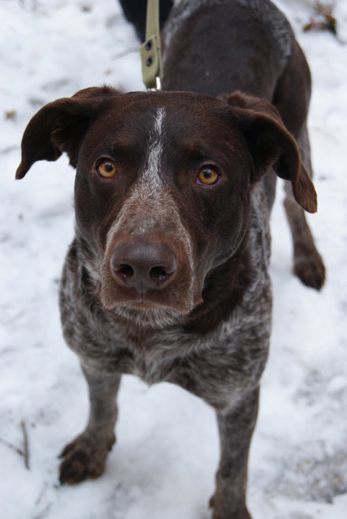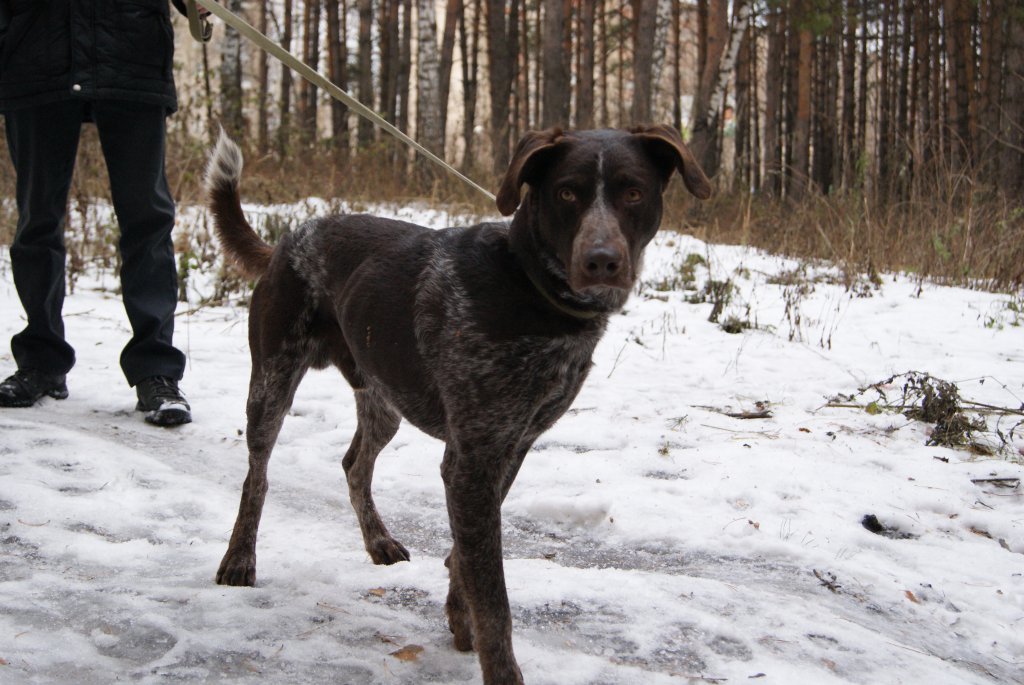 Всем здравствуйте! Пёс найден две недели назад в районе ул. Ивана Черных. Гай воспитанный и красивый. Дома не гадит – терпит до прогулки. Понимает основные команды. Любит ездить на машине. Хорошо ладит с другими собаками. Гай был у ветеринара, со здоровьем всё в порядке. Доктор определил принадлежность к охотничьей породе Курцхаар, возможна помесь с Дратхааром, максимальный возраст – до двух лет. Пёс помыт, обработан от паразитов, 5.11.14 будет привит и обретёт паспорт.