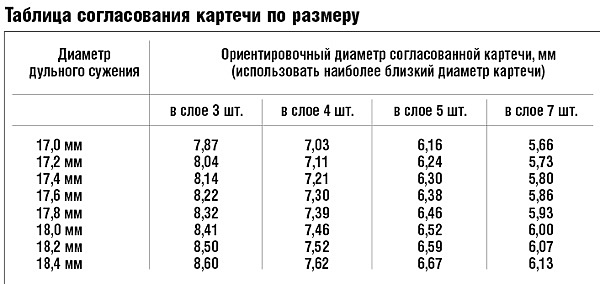 подобных таблиц множество опубликовано. найдутся ли нужные размеры картечи?