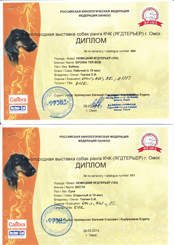 Часть Итога монопородной выставки НЕМЕЦКИЙ ОХОТНИЧИЙ ТЕРЬЕР (ЯГД ТЕРЬЕР) ранга (КЧК-кандидат в чемпионы клуба) 29 марта 2015 года. Эксперт: Купляускас Евгений Стасович (Москва).