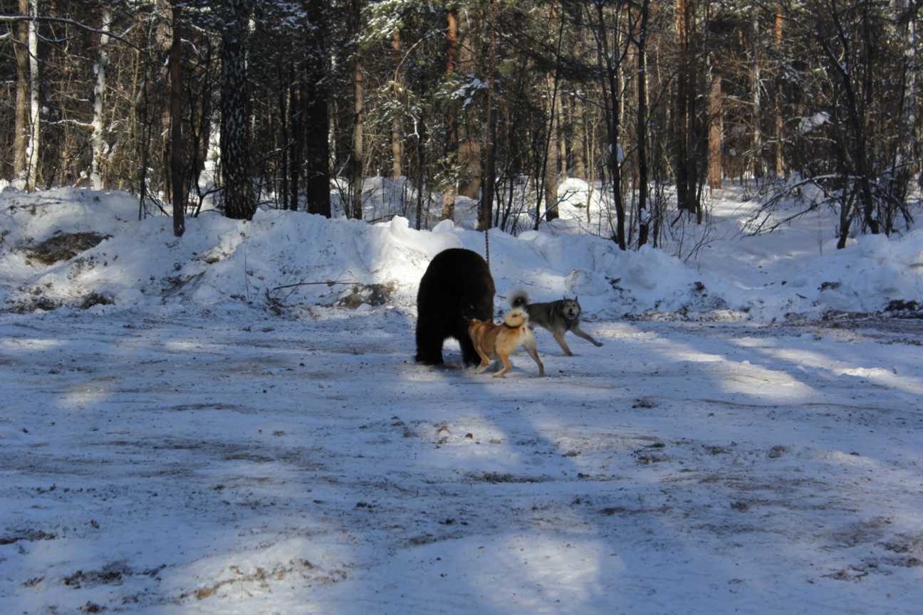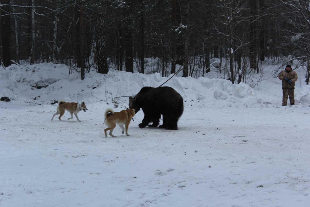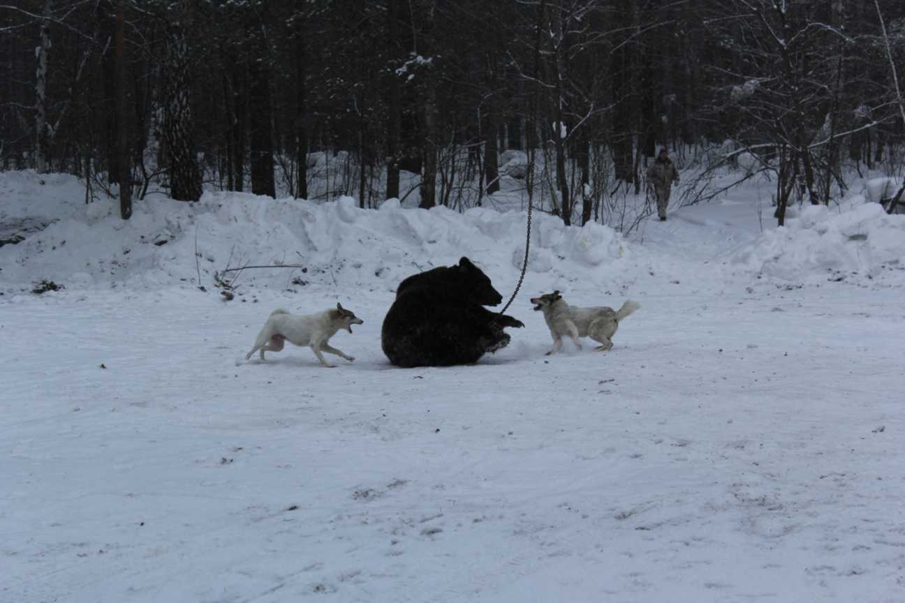 Испытания лаек по подсадному медведю проводятся в течение всего года при температуре не