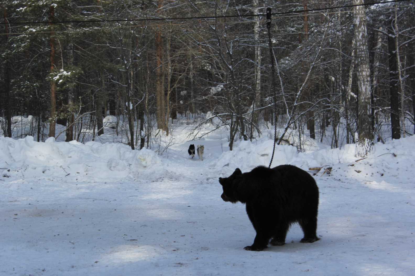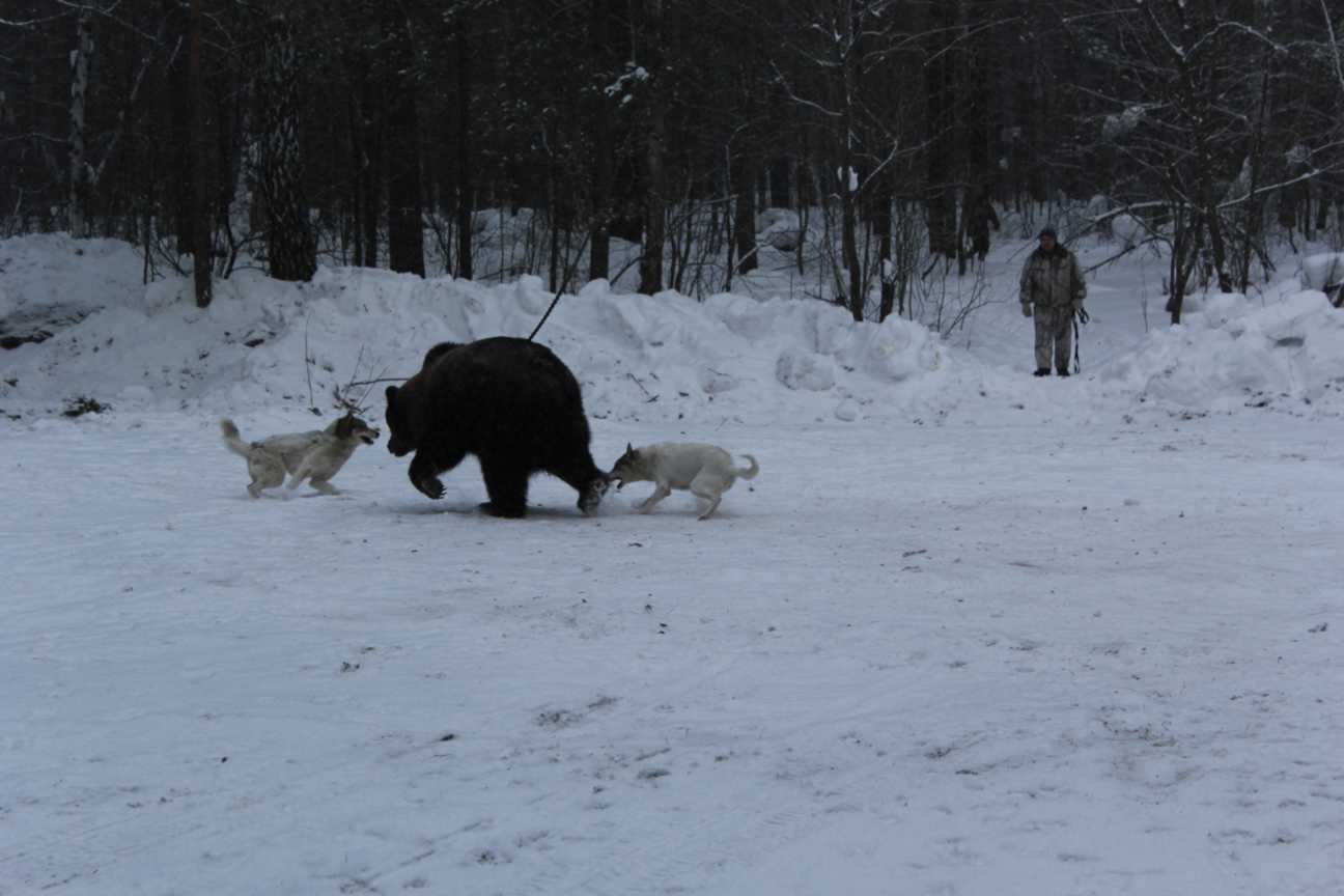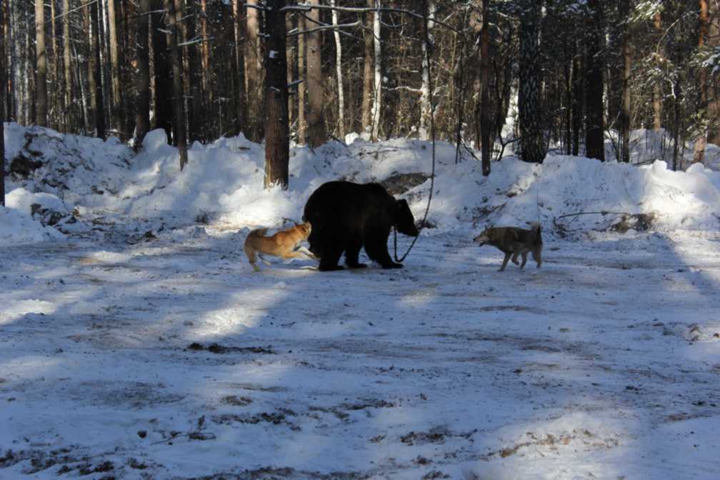 Испытания лаек по подсадному медведю проводятся в течение всего года при температуре не