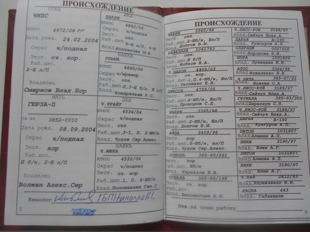 Свидетельство на собаку № 3852-0019 тг . т.8-913-261-18-53 Александр