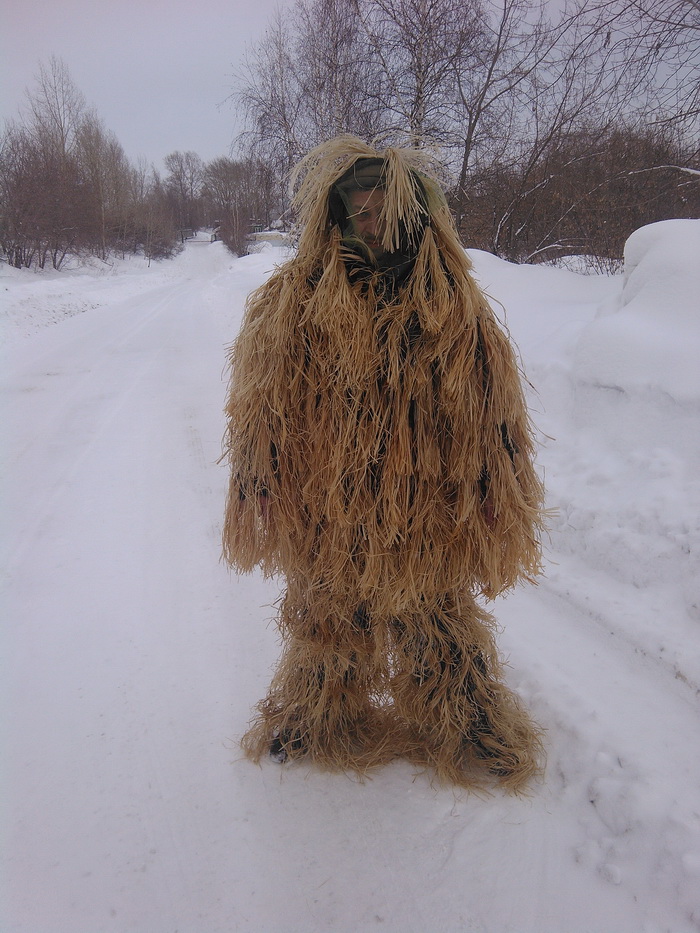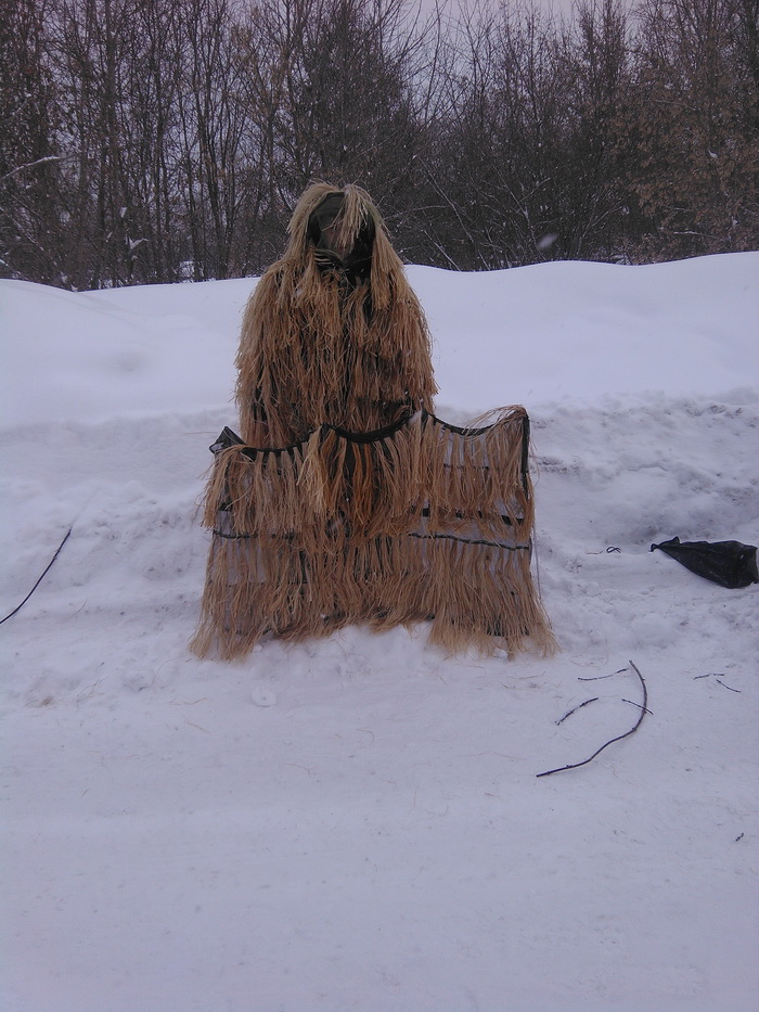 собственно вся суть в теме объявления) капюшон с утяжкой по контуру лица+ антимоскитная сетка дабы невонять репелентами и неотпугивать трофеи. Укрытие за которым прячется охотник на фотографиях легким движением руки пристегивается к куртке и у нас получается полноценный плащ. комплект 1 куртка, 1 штаны, 1 полотно ( оно же на фотографии в виде укрытия), 1 мешок-авоська с ручками. маскировочный материал натуральный лык, основа ПЭ сетка. так же возможен индивидуальный подход к заказчику с его личными пожеланиями, будь то размер, комплектность или еще что то. цена 3500 рублей. вопросы в личку либо 8*913*927*48*98 и 8*913*726*41*83