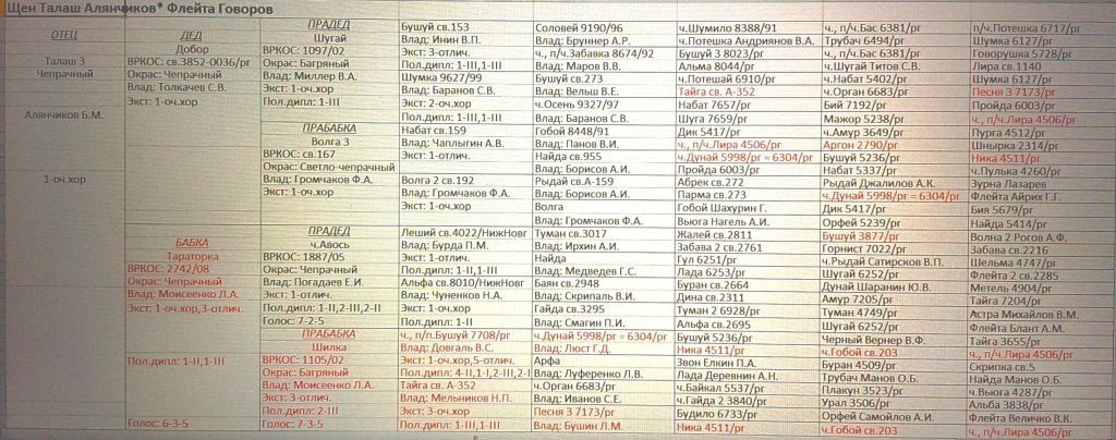 Щенки инбридированы III - III на чемпиона Авося 1887/05 Погадаева Е.И. и Шилку 1105/02 Моисеенко Л.А. и за бланком родословной многократно на чемп. Лиру 4506 Параскуна А.М. и чемп. Аргона 2790 Титова Л.А.