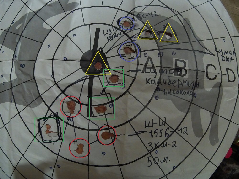 Стрельнул из ЗКМки калиберными пулями на 50метров. Со снаряжением сильно не заморачивался, вот результат: