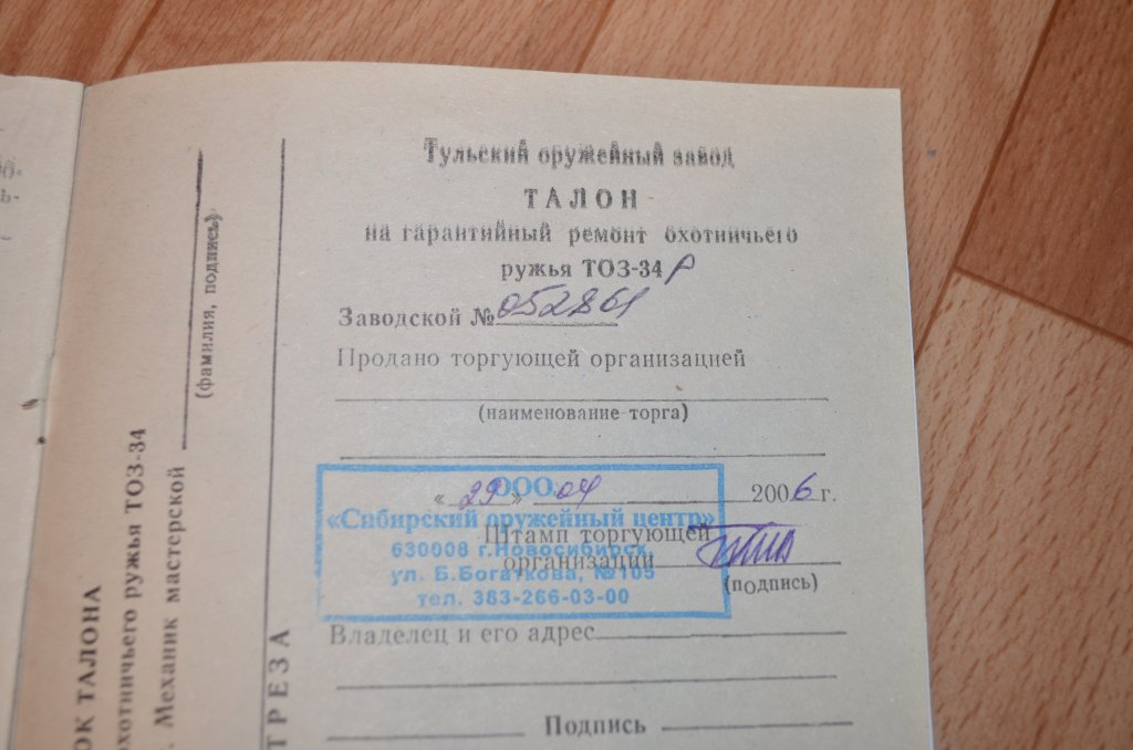 Re: Продам ТОЗ 34 Р Новосибирск штучное-это печать в паспорте,что якобы ружью было уделено больше внимания,чем рядовому...
