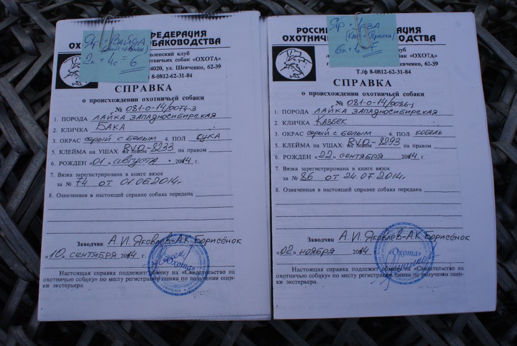Щенки из питомника с родословной. 1. Порода : Западно-сибирская лайка 1.2. Количество щенков (кобелей/сук) : 4/3 1.3. Дата рождения щенков : 09.12.2014 2. Родители щенков : 2.1. Отец :Яр 2.1.1 Все дипломы за рабочие качества с указанием по виду дичи :2к, 3м 2.1.2 Племенной класс : 2.1.3 Оценка экстерьера : Отлично 2.2. Мать : Вайда 2.2.1. Все дипломы за рабочие качества с указанием по виду дичи : 2к, 3м 2.2.2. Племенной класс : 2.2.3. Оценка экстерьера : Хорошо 3. Кинологическая организация, спланировавшая вязку: 4. Место нахождение щенков : г. Витебск 5. Контактная информация : мтс 80-29-5047690 Татьяна 6. Цена щенков (не обязательно) : от 250 евро.