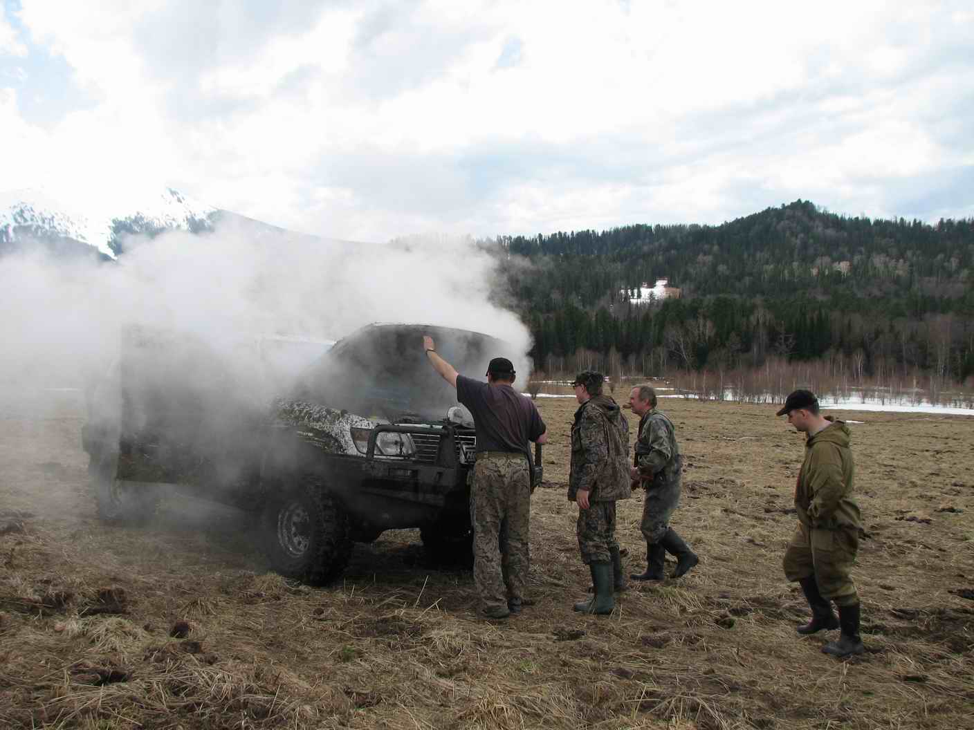 в горах Горного наигнулся радиатор (пластиковую крышку сорвало).