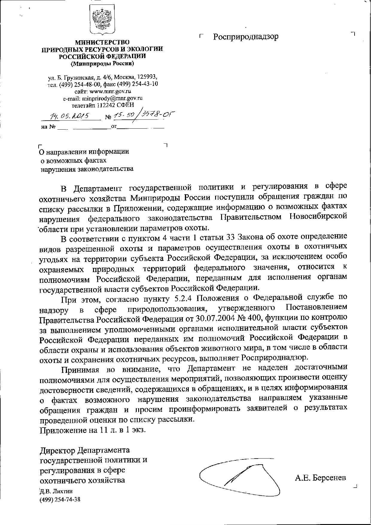 Уважаемый (ая) Рафаэль! Минприроды России благодарит Вас за обращение. Ваше обращение зарегистрировано за номером ............. от 05.05.2015 По данным реквизитам по телефону можно получить информацию о дальнейшем прохождении Вашего обращения. Ответ на обращение, подлежащее рассмотрению в Министерстве, будет отправлен в электронном виде на указанный Вами адрес электронной почты.