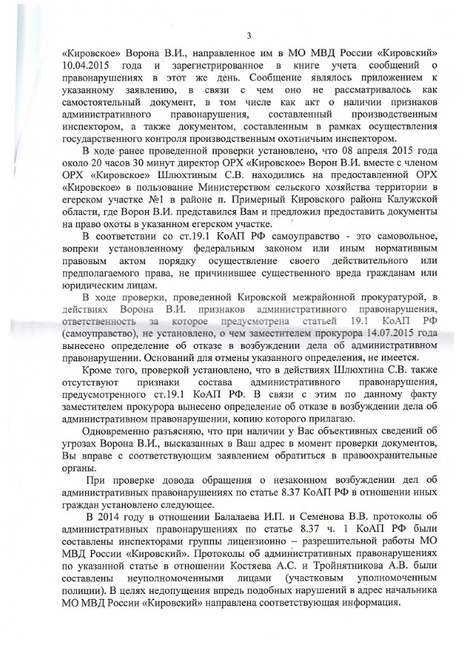 Ответ из полиции на заявление о противоправных действиях Ворона. Ментам плевать на федеральные законы.
