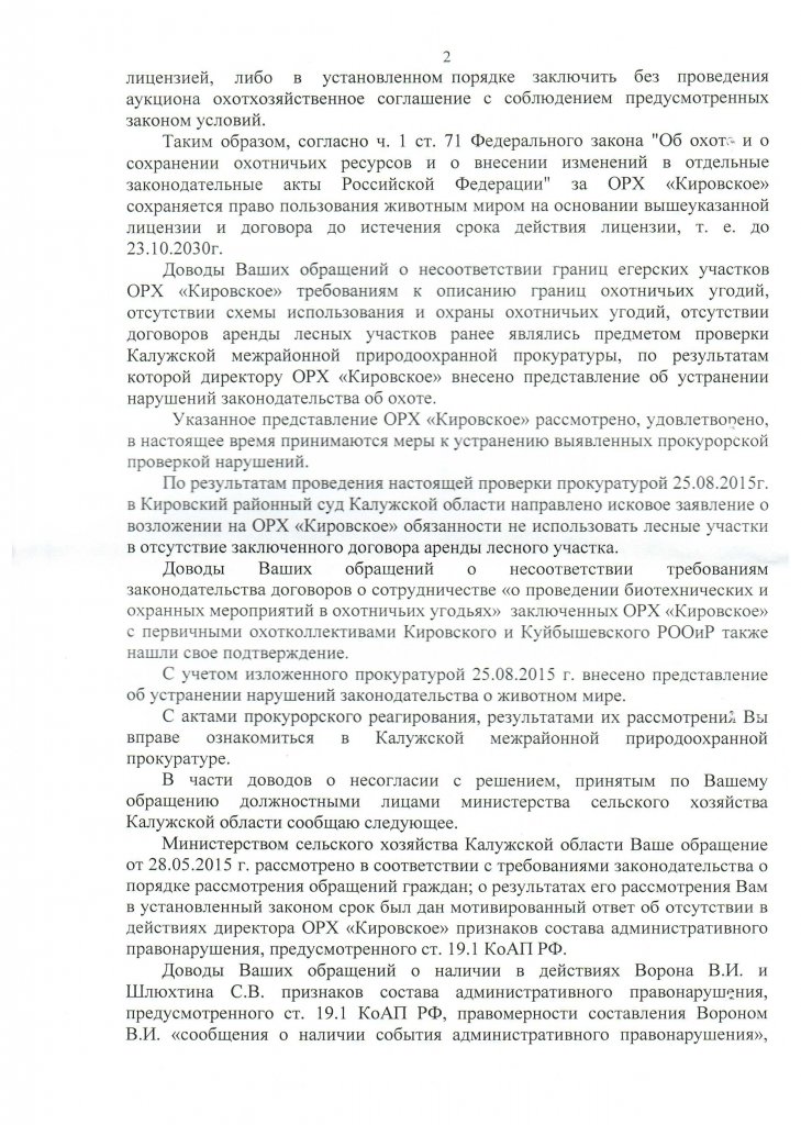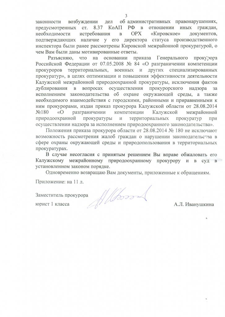Прислали ответ из природоохранной прокуратуры по ООО "Игнатовское"