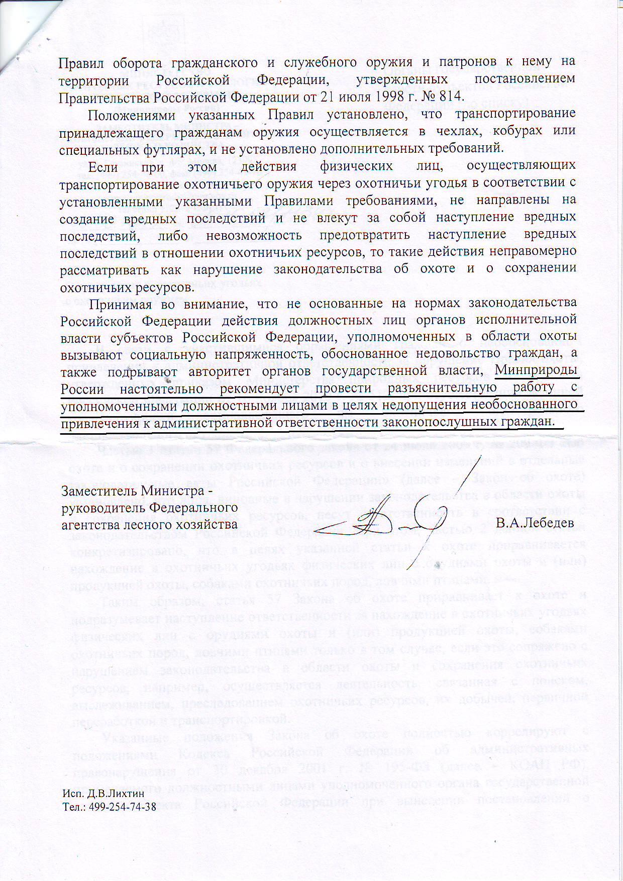 Что к чему, нафига эти сканы сейчас прокуратуре????......Еще раз, уважаемый- ВАС ПОКА НИКТО НИ В ЧЕМ НЕ ОБВИНИЛ, И К ОТВЕТСТВЕННОСТИ ЗА НАРУШЕНИЕ ПРАВИЛ ОХОТЫ НЕ ПРИВЛЕК! Вам уже куча народу в этой теме отписалась- жаловаться надо на незаконные действия сотрудника ЛРО!!, Который вообще непонятно, чего от Вас хочет, ибо он не наделен полномочиями вынесения постановлений по вопросам охраны природных ресурсов, а законодательства в области оброта оружия вы вообще не нарушали!!! Вы сейчас все в кучу намешаете ,прокуратура покрутит у виска , и асбсолютно законнонапишет вам отказной, ибо непонятно, чего же вы от нее хотите...