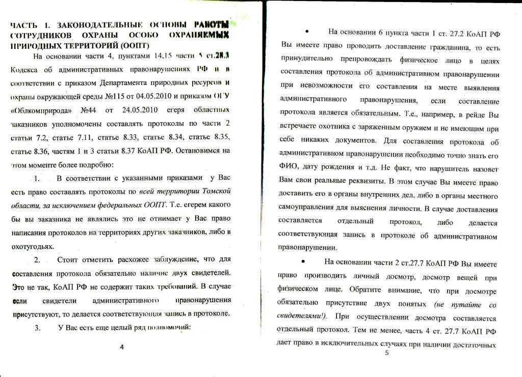 Не путайте егеря госзаказника и егеря охотобщества. Указанное пособие для егерей госзаказников. Егерь госзаказника - госслужащий, должностное лицо, поэтому он имеет такие полномочия согласно КОАП РФ. А егерь охотобщества - наемный работник коммерческой либо некоммерческой организации, поэтому таких прав у него нет.