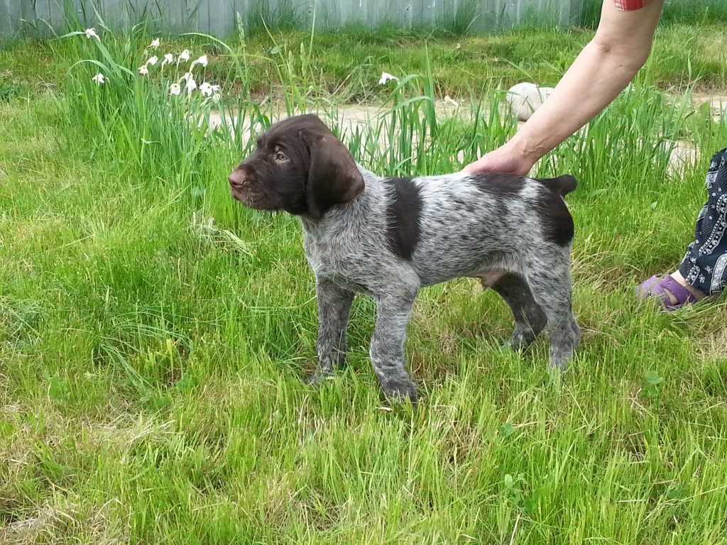 Продаются щенки Дратхаара от П.П. Ч.Р. Арчи (осталось 2 кобеля и 1 сука). Рождены 01.04.2015, привиты, клеймены, купированы хвосты. Местонахождение щенков: Смоленская область, город Рославль. ОТЕЦ: АРЧИ, 28.09.2007г.р., ВПКОС 3921/09, РКФ 2170918 вл. Якушев Андрон Александрович Племенной класс : ЭЛИТА Оценка экстерьера : ОТЛИЧНО - Полевой Победитель состязаний (2014г.) памяти Казакова Г.К., - Полевой Победитель состязаний (2012г.) памяти Казакова Г.К., - Полевой Победитель VI Чемпионата дратхааров (2011г.), - Серебряный призёр IV Чемпионата дратхааров, Лучшая молодая собака (2009г.), - Бронзовый призер состязаний континентальных легавых, Лучшая молодая собака (2009г.) - Бронзовый призер межпородных командных состязаний (2014г.) - Чемпион России, - Чемпион Евразии, Лучший Кобель, Лучший Представитель Породы (Евразия-2 2010г.) - Чемпион РКФ - Чемпион РФОС - Чемпион 121 выставки МООиР 2014г. - 1-е место в ринге кобелей средней группы на 116 выставке МООиР 2009г. - Победитель в средней группе кобелей на 117 выставке МООиР 2010г. - Лучший универсальный дратхаар МООиР - 2009г. - Лучшая молодая собака МООиР - 2009г. - Лучший полевой дратхаар МООиР - 2011г. - Лучший полевой дратхаар МООиР - 2014г. ДИПЛОМЫ: I степени - 1; II степени - 10; III степени - 14. Ссылка на карточку АРЧИ huntdogs.ru/dog_diploms_legavie.php?bc_tovar_id=1878 МАТЬ: ЧАРА, 21.11.2007 , РКФ 3267881, ВПКОС №4237/11 вл. Тутынин Борис Иванович Племенной класс : I Оценка экстерьера : ОТЛИЧНО Полевые испытания охот.собак – 3 диплома; Всероссийские и региональные выставки – 7 выставок: Чемпион РФСС, кандидат в Чемпионы РФСС, Кубки РФСС. ДИПЛОМЫ: 2-IIIб/д, 1-IIIу Ссыла на карточку ЧАРЫhttp://huntdogs.ru/dog_details.php?bc_tovar_id=3761 Цена договорная, возможна доставка. Заводчик: Борис тел. 89107646802, Оперативный показ по скайп bitutynin, e-mail: bitutynin@yandex.ru