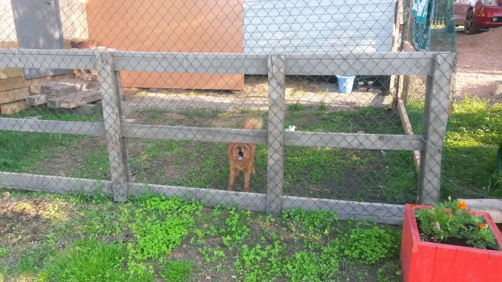 Сделал своей на даче вот такой вольерчик, время было мало, красоту не наводил. Самое главное собаке есть где свободно бегать и ночевать! Подкопы пока не делает....