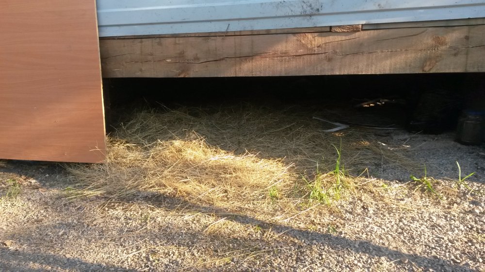 Ночует под беседкой, сена настелил много, не дует, крыша над головой есть (решил будки пока не нужно).