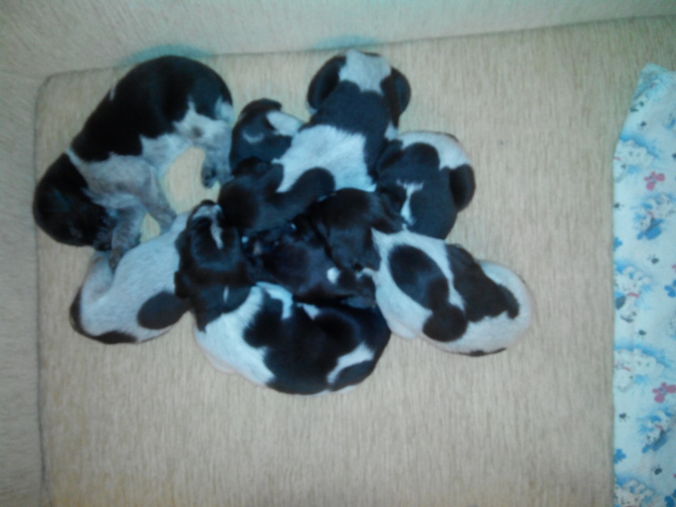 1.1. Порода : Дратхаар 1.2. Количество щенков 7 (кобелей/сук) :7/0 1.3. Масть Кофейно-пегий в седину. 1.3. Дата рождения щенков : 01.07.2015 2. Родители щенков : 2.1. Отец : Астор-Рич , кофейно-пегий в седину. 31.03.2010 родословная № 12653 ФМСУ, владелец Герасиков Л.Л. Крым, Симферополь 2.1.1 Все дипломы за рабочие качества с указанием по виду дичи : 5 IIIст в тч: 2-куропатка, 1 вальдшнеп, 1 перепел, 1 фазан. 2.1.2 Племенной класс : 1 2.1.3 Оценка экстерьера : отлично (участник 4-й всеукраинской выставки с оценкой отлично). 2.2. Мать :Боня, кофейно-пегая в седину, 31.05.2011, родословная № 15018 ФМСУ, владелец Благодаткин А.В. г. Николаев. 2.2.1. Все дипломы за рабочие качества с указанием по виду дичи : 3 д II ст. в тч: 2 -куропатка, 1-утка; 4 д III ст в тч: 1-коростель, 1-фазан, 1 -утка, 1-перепел. 2.2.2. Племенной класс : 1 2.2.3. Оценка экстерьера : отлично ( участник 4-й Всеукраинской выставки, 4 в ринге в средней группе ,1 место- во II племенном классе) 3. Кинологическая организация спланировавшая вязку: Региональная общественная организация "Крымское Республиканское Общество Охотников и Рыболовов " ( РОО "КРООР"), которая является членом " Росохотрыболовсоюза". 4. Место нахождение щенков : г. Симферополь 5. Контактная информация : Благодаткин Алексей, эл. почта:Blagodatkin.a@mail.ru, тел.+7-978-893-05-36, скайп: Blagodatkin.a1 6. Цена щенков 10000-15000 рубл. остался 1 щенок, уже с прививкой и ветпаспортом.