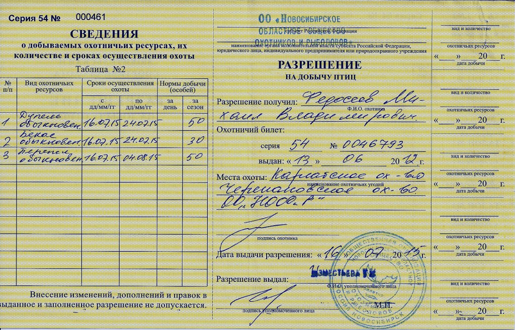 Вопрос по поводу заполнения разрешений. В лодке в скрадке заполнять, это шанс вообще испртить, намочить. Пусть Деп ответит на такой вопрос, можно ли заполнять на стане?