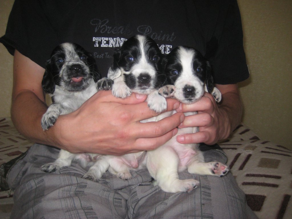 продам породистых щенков русского охотничьего спаниеля. в новосибирске. (без документов) родители матери из алтайской краевой организации охотников и рыболовов, имеют полевые дипломы. отец без документов рабочий.(охотник) родились щенки 12 июня,черно-белые,черно-пегие. есть мальчики и девочки.89237316799