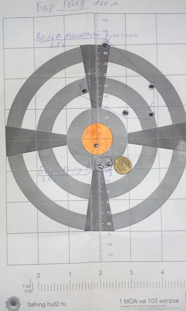 Re: Патроны 5,56х45 "Gold" по правилам ориентирования на местности, 150 шагов, это как раз получается 100м, не вижу, чтоб 3 отверстия закрывались монеткой, но думаю там как раз 1моа, вполне достойный результат! но слышал, что в минуту и со свина стреляют валовкой. Нисколько не умаляю вашу с братом стрельбу, наоборот здорово, многим еще учиться и учиться так стрелять! но всеже это не совсем то, что ты написал про 120м и закрытие монеткой (там отверстия касались бы краями. жму руку!