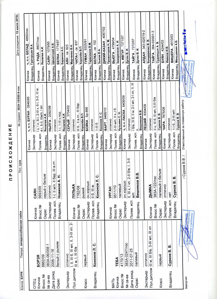 Спасибо! Действительно в родословной собраны отличные рабочие собаки: Через Чару( ВПКОС 7875/08) Уральские собаки, через Лешего ( ВПКОС 8304/09) -Тюменские и Кемеровские), через Ургана (ВПКОС 9511/10)- собаки Юга Кузбасса, Хакассии и Урала. Отец щенков -Борзя (ВПКОС 8862/09) привнес крови белорусских и брянских лаек....жесткий, рабочий кобель.