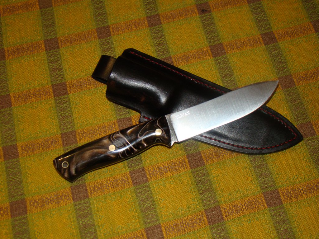 Фултанг сталь ELMAX твердость 61 HRs, рукоять киринит, ножны кожа шведская растительного дубления. 6500 т.р. цена 2014г. Продан