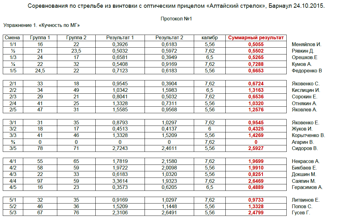 Результаты. Фото мишеней будем выкладывать постепенно. (сегодня у нас проверка КХО).