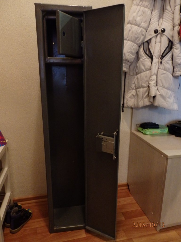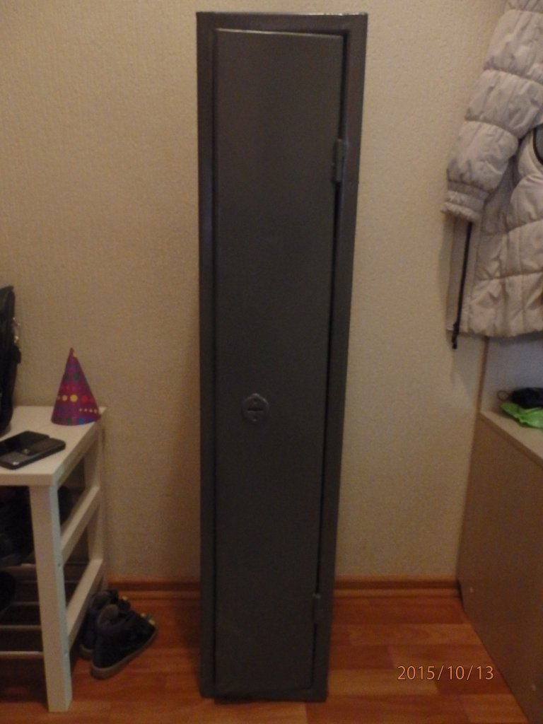 В связи с перевооружением продам сейф, ВхШхГ - 1200х250х200. Высота внутри (до ящичка) - 955 мм. Ящичек - 240. Есть отверстия для крепления к стене и полу, 3 ключа. металл - 2 мм. Цена 3 т.р.