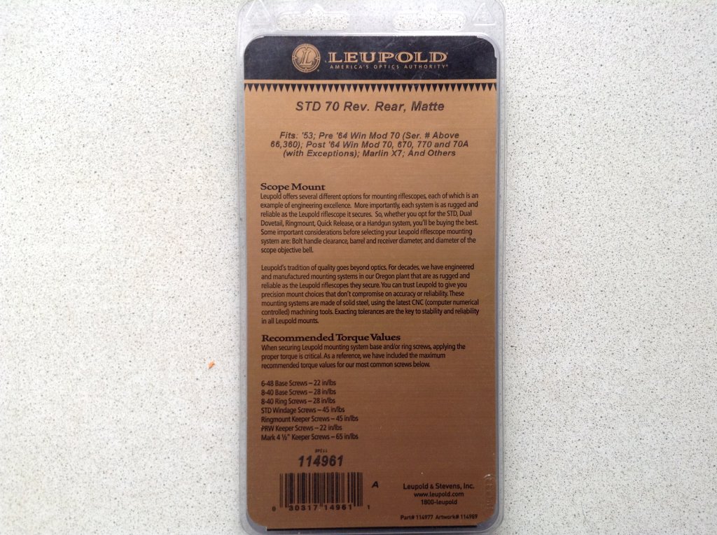 Продам комплект База LEUPOLD STD Winchester 70 RVR 2-piece/Кольца