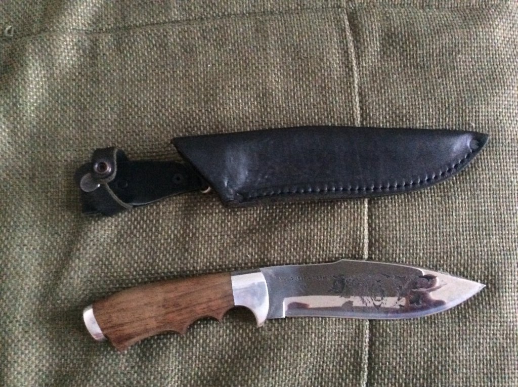 Производитель г. Кизляр Общая длина (мм): 300 Длина клинка (мм): 163-165 Наибольшая ширина клинка (мм): 40-45 Наибольшая толщина клинка (мм): 3-4 Длина рукояти (мм): 130-135 Толщина рукояти в средней части (мм): 21-25 Твердость клинка, HRC 57-58 Материал клинка: коррозийно-стойкая сталь 65х13 Ножны: поясные ножны выполнены из натуральной кожи Материал рукояти: кавказский орех, гарда и навершие ножа выполнены из алюминия Нож соответствует требованиям ГОСТ Р 51644-2000 «Ножи разделочные и шкуросъемные. Общие технические условия» Нож новый.ценна 1500 руб. Тел.9130181119