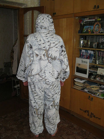 Найди по инету костюм "Полярная сова", замечательный, не шуршит и маскировочные свойства хороши. Предположительно магазин "Сплав", если комп показывает верно, то в Н-ске адрес ул. Красноярская, 32, тел 8(383) 221 71 81 или другой магазин Ценник конечно не 500р...но и качество выше. Сыну покупал